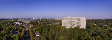 Das Corbusierhaus: ein als vertikale Stadt angelegtes Hochhaus, das im Rahmen der Internationalen Bauausstellung von 1957 in direkter Nachbarschaft zum Olympiastadion entstand.